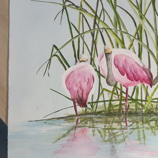 Bowl of Roseate Spoonbills, Original Watercolor Painting